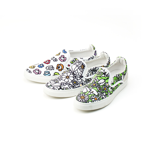 2011年の秋冬にデビューしたデザイナーズフットウェアブランド[White Flags]が、キャラクターアーティスト「tarout」とコラボレーション。アート作品のように仕上がったスリッポンは、コーディネートを個性的なものにしてくれる。