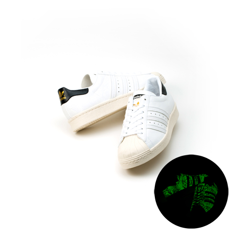 スニーカーショップ「atmos」とのエクスクルーシブラインである「G-SNK」シリーズの第7弾となる最新作。大蛇からインスパイアされたスネークパターンの蓄光プリントが施されており、シンプルなホワイトアッパーが、暗闇でガラリと雰囲気を変える。